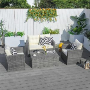 Setul este foramt dintr-o canapea, doua fotolii, o masuta cu spatiu de depozitare din plastic si perne ce ofera mai mult confort. Prezinta un design placut si ofera un plus de eleganta gradinii sau terasei.